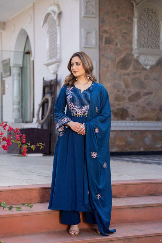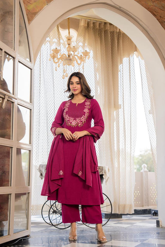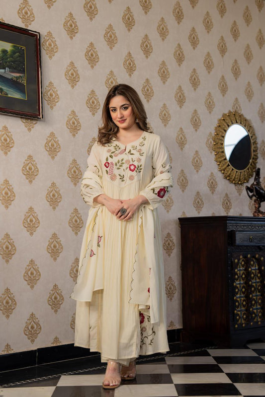 Floral embroidery Rose Mul cotton suit