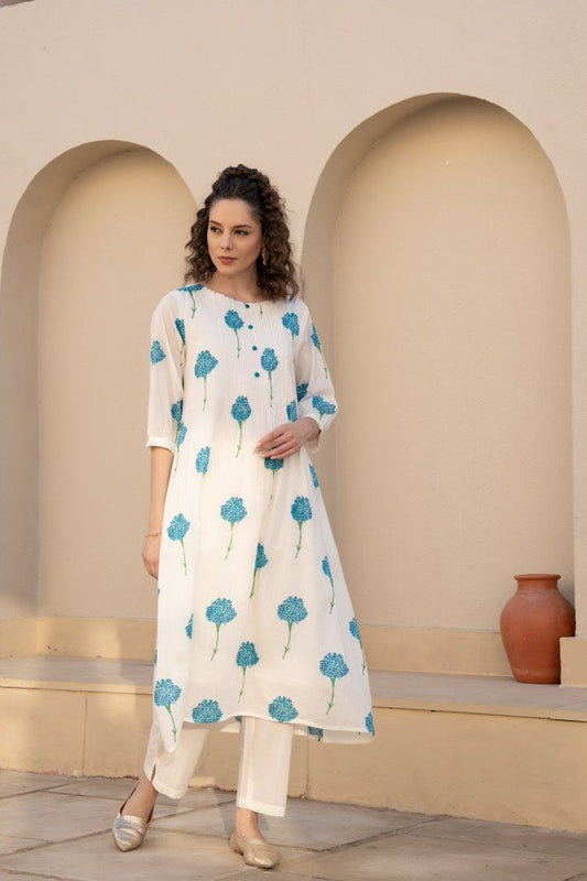 Lilac Pastel Garden Mul Cotton A Line Kurta Set