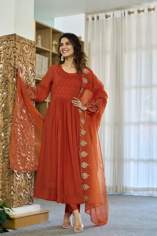 Rust mul chanderi Suit Set