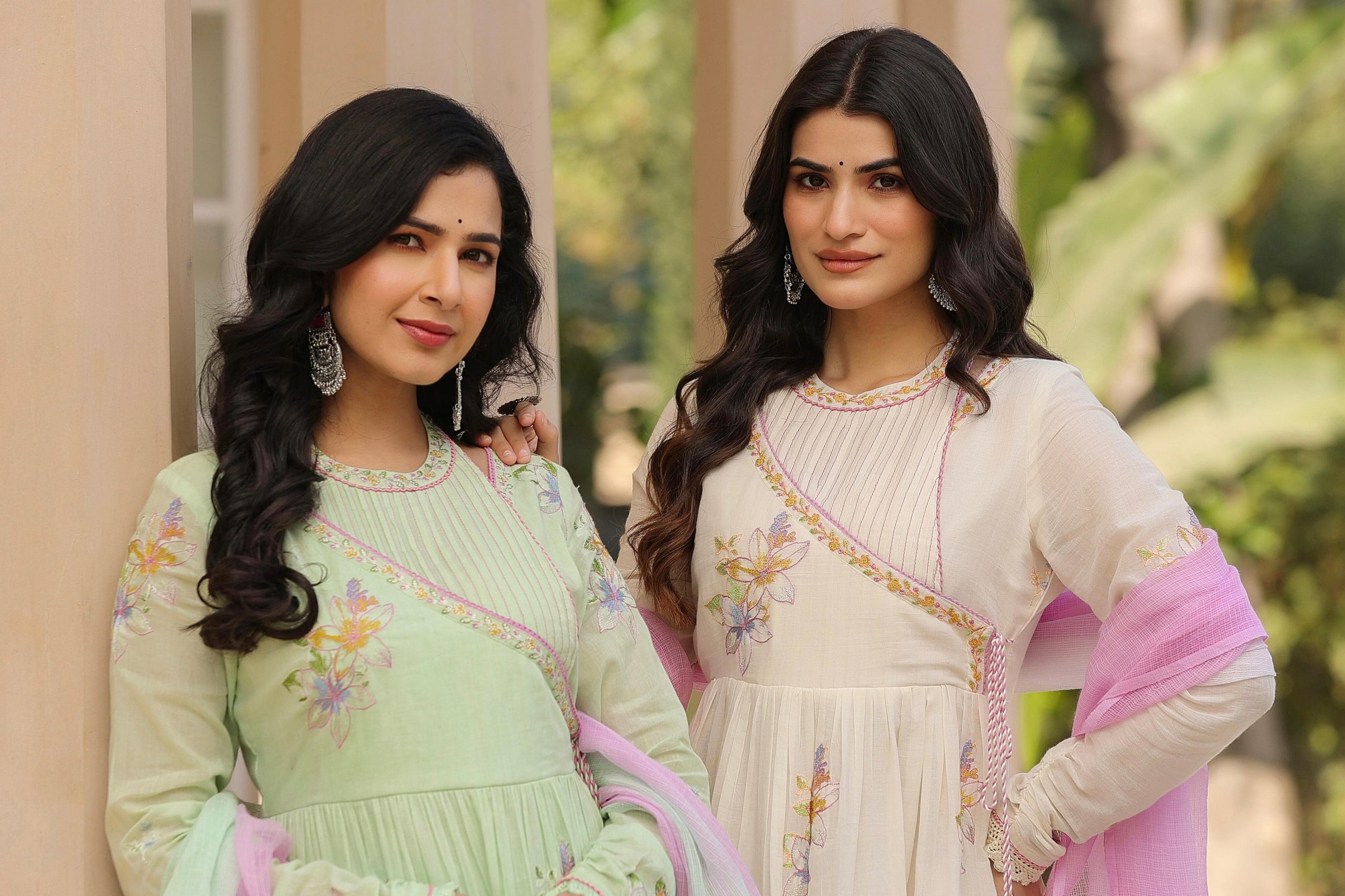 Floral embroidery Mint Mul cotton suit