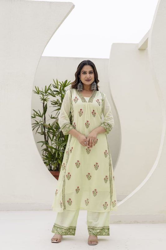 Green Cotton block print Suit Set