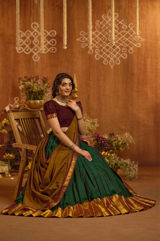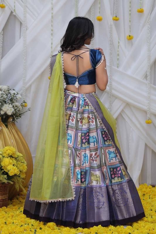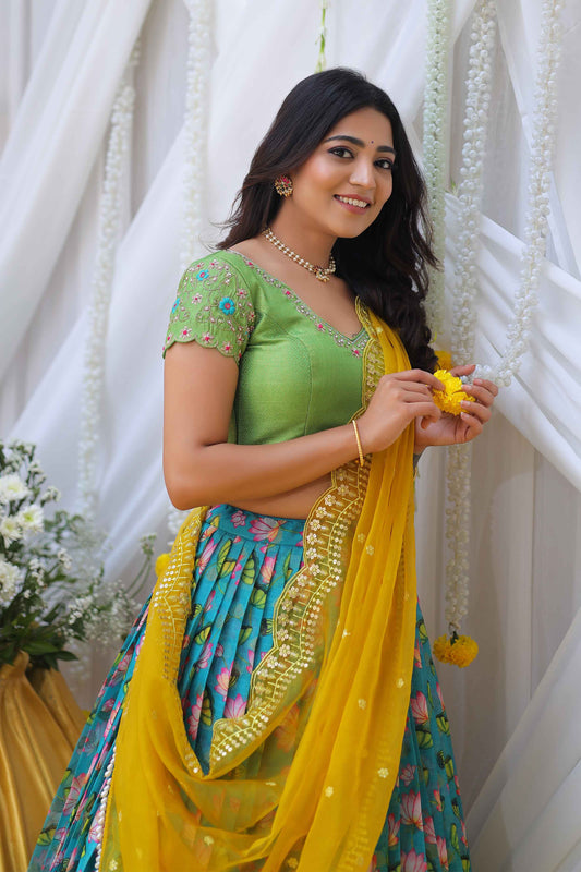 Nishkala Lime and Blue Gadval Silk Lehenga Set PC775