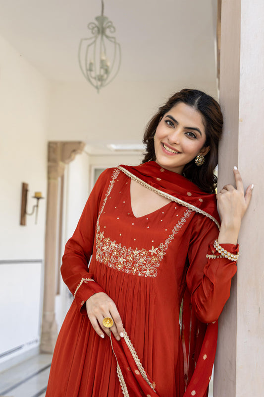 Coral Charm Chanderi Suit Set