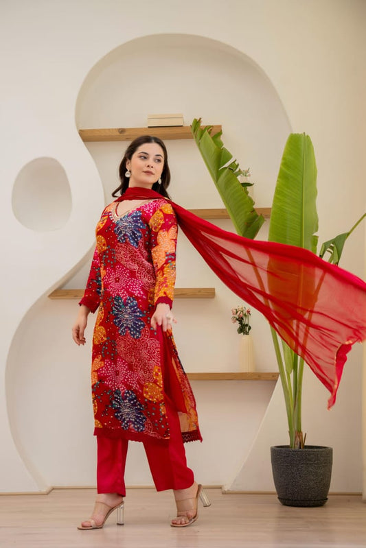 Chinnon straight cut Red Suit Set