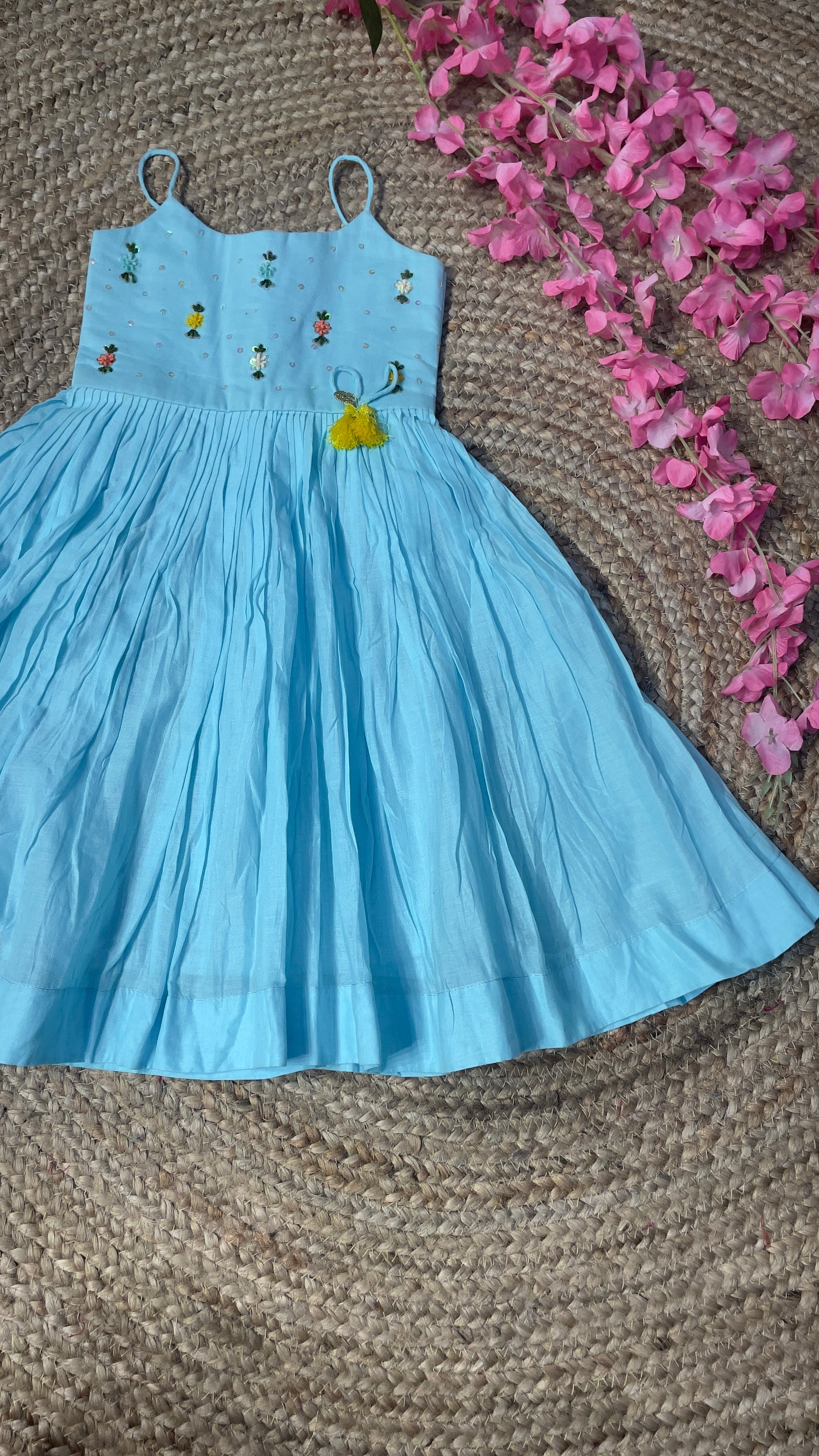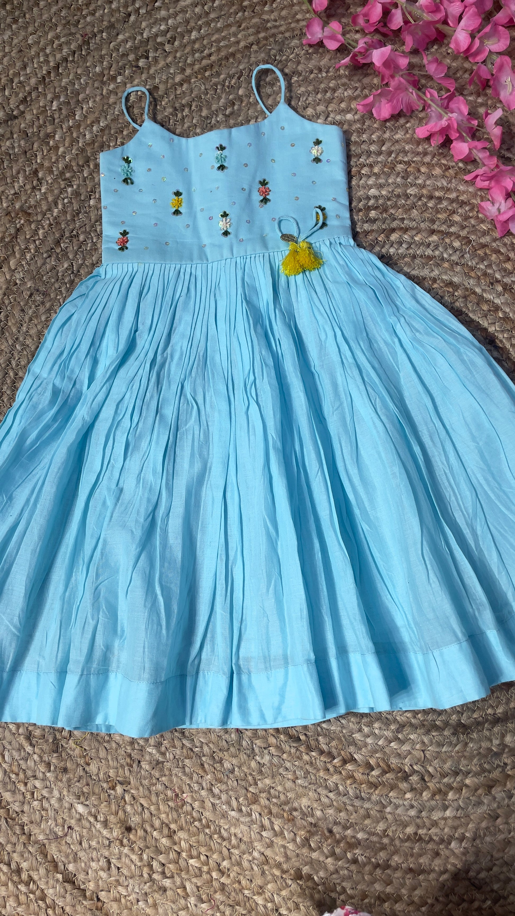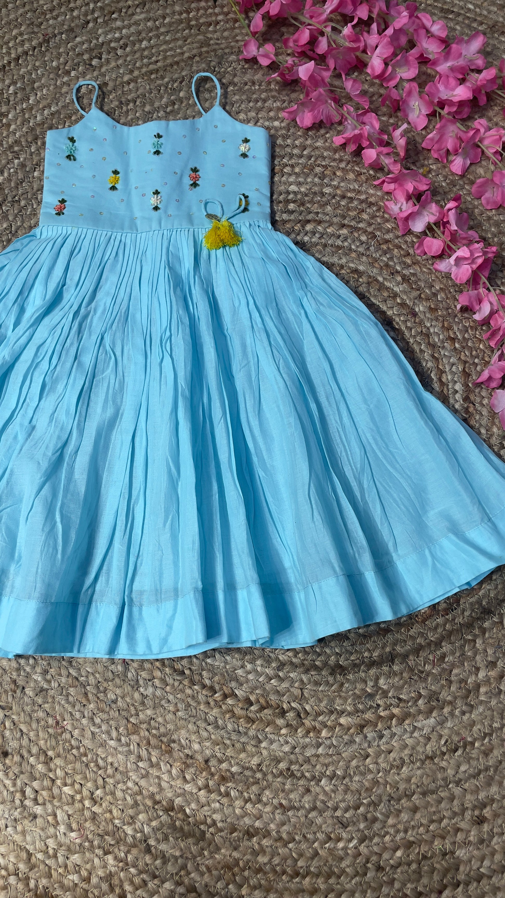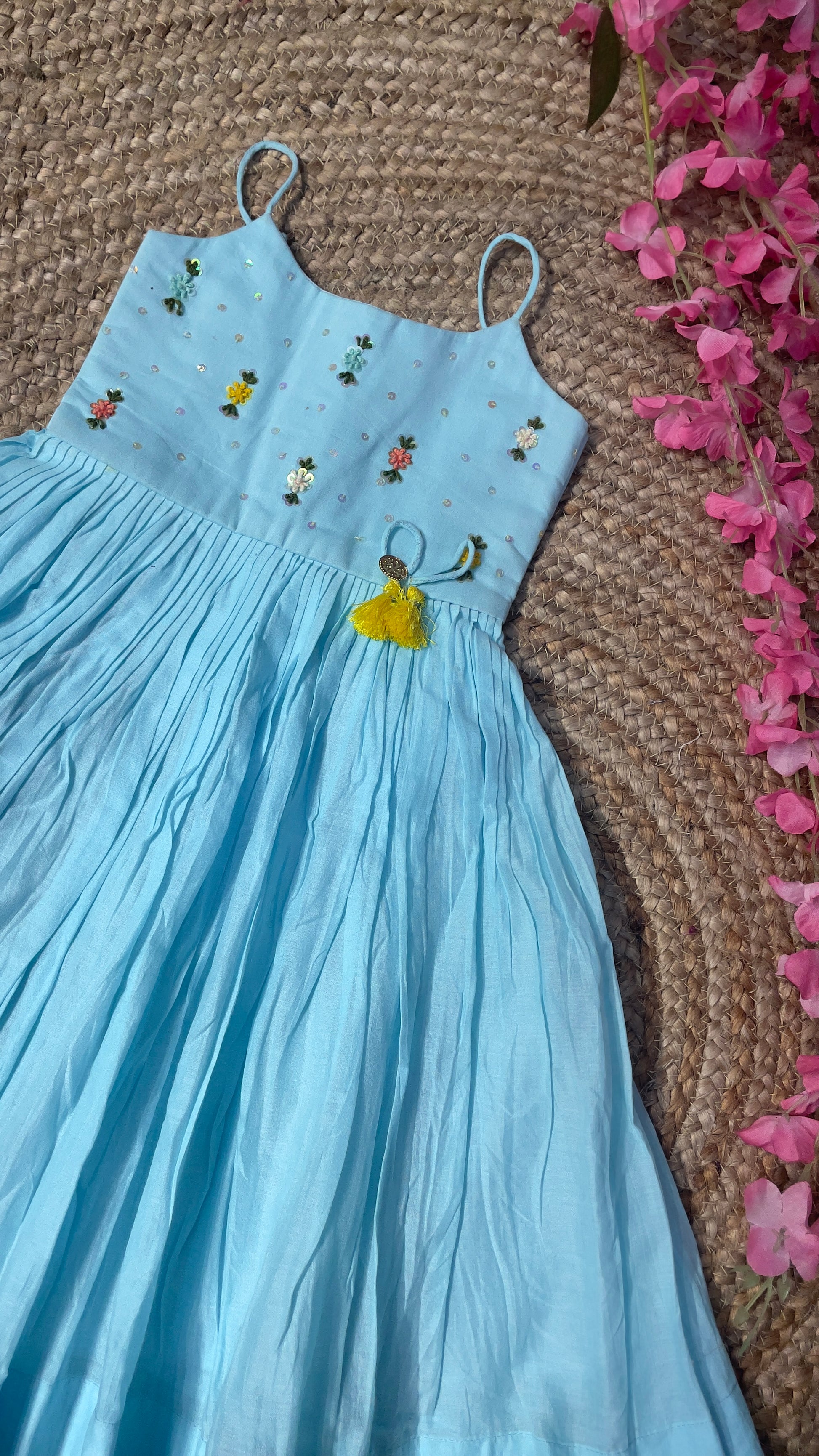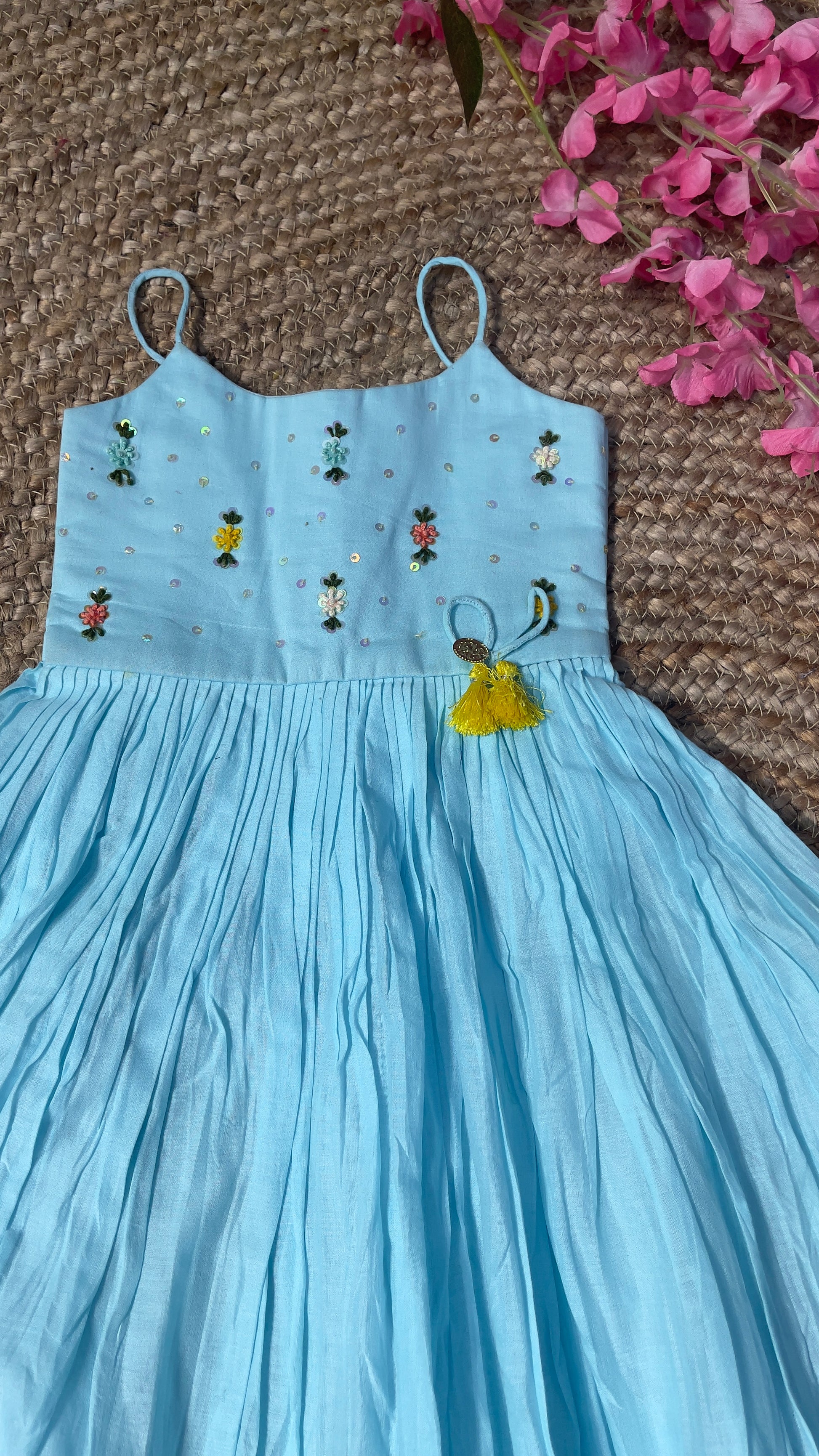 Work: Hand-worked with bead and flower Sequence