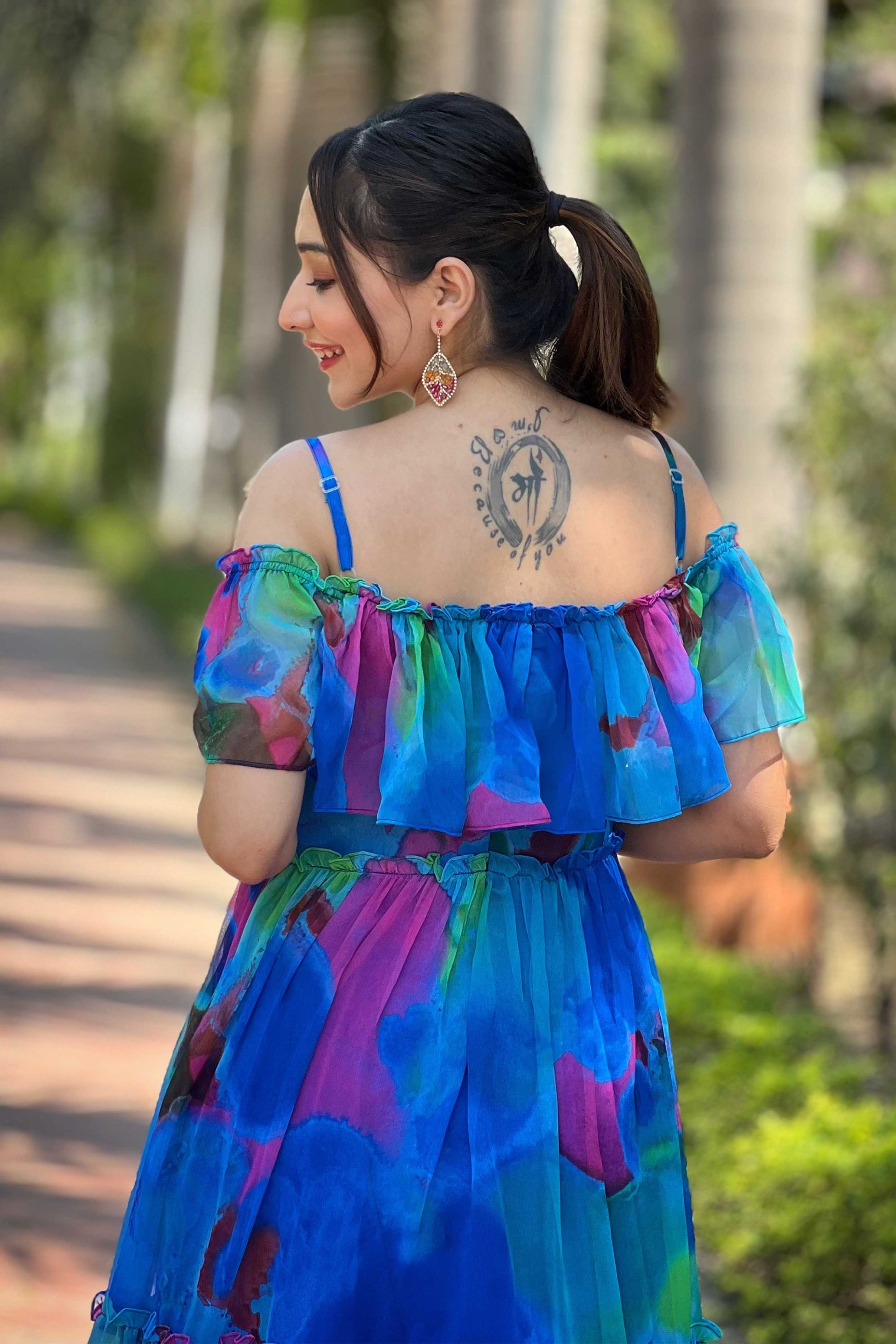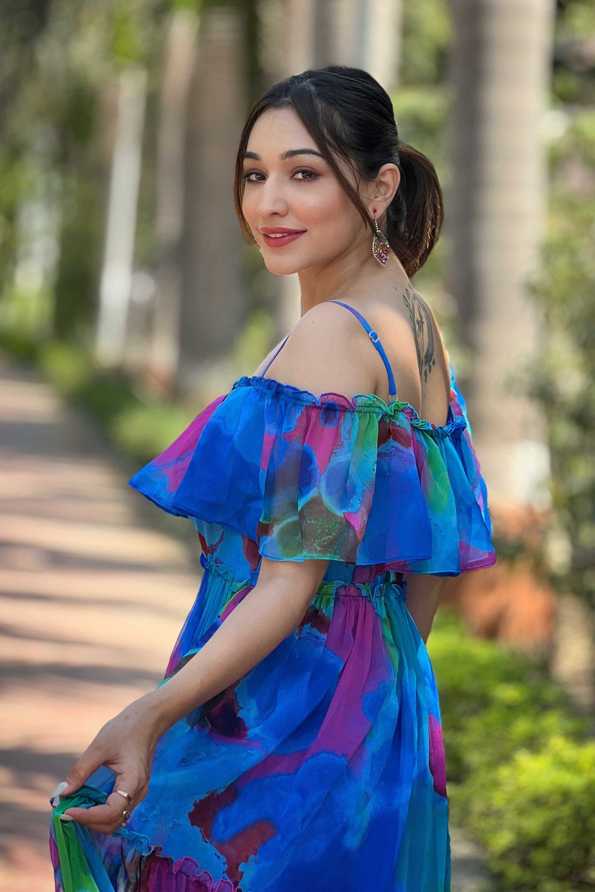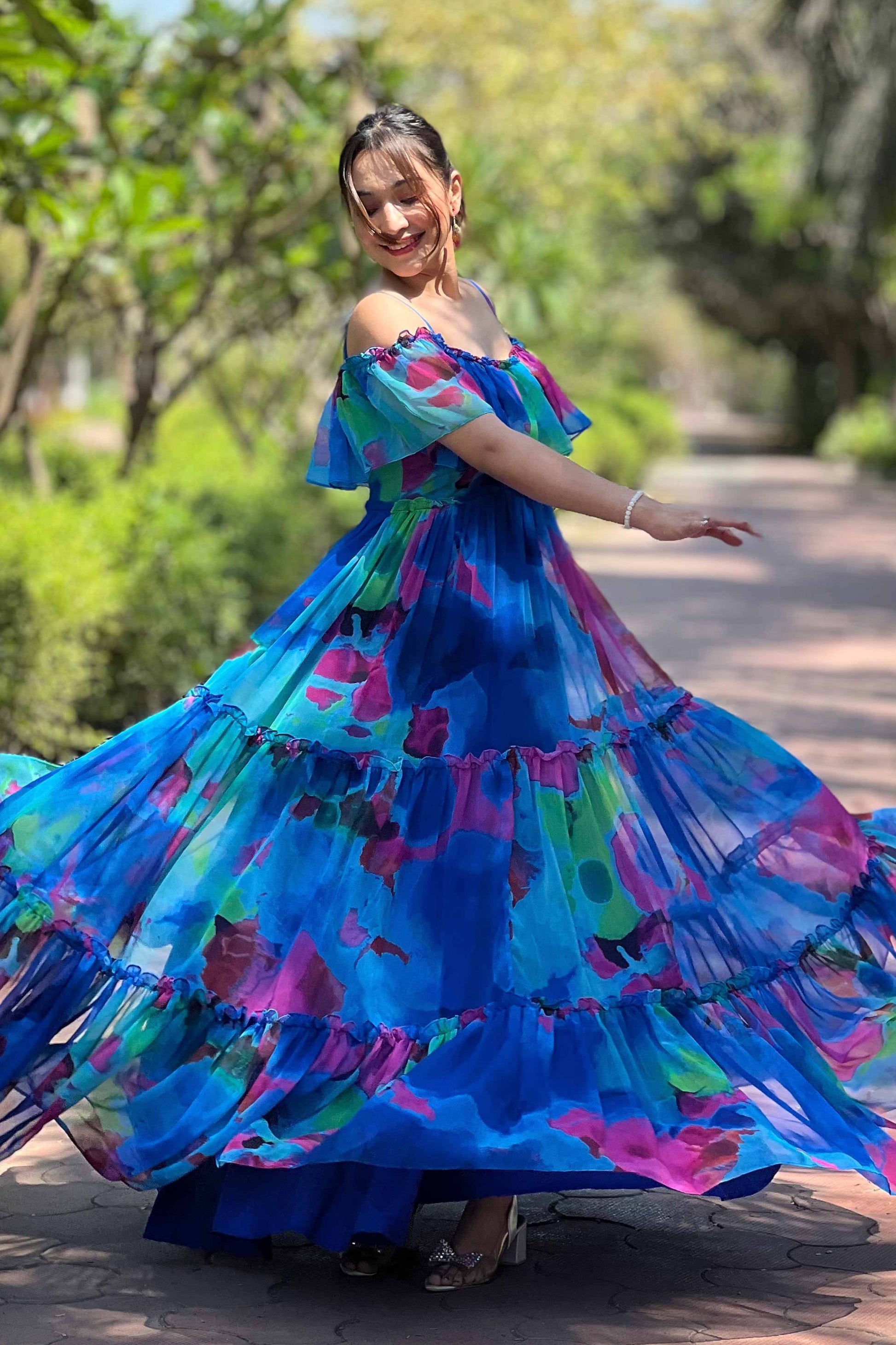 So, Girls, get ready to look stunning on your upcoming date with our new collection! Whether you're celebrating a special occasion with loved ones or simply enjoying a night out, make sure to rock the party in our Blue ruffled long dress.