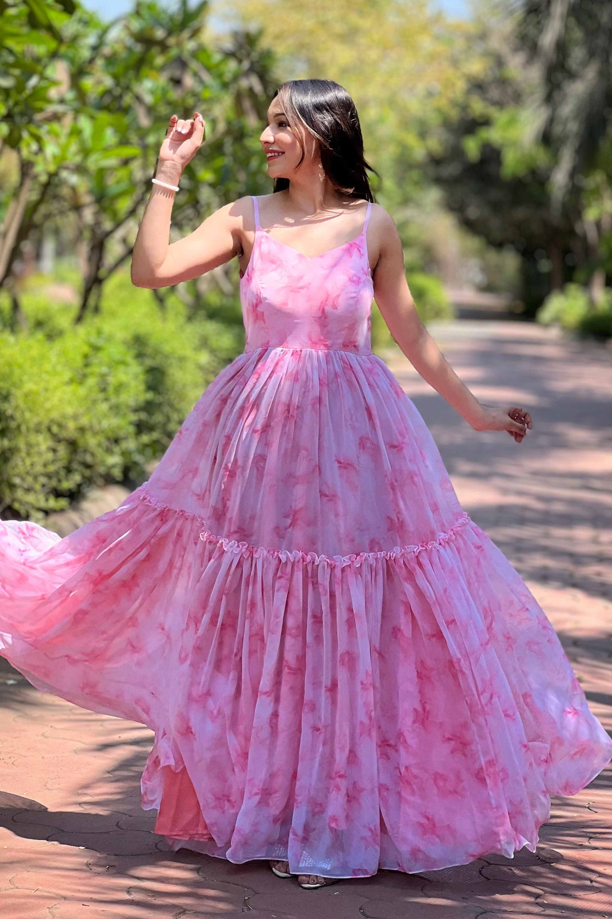 Incorporate minimalist styles into your ethnic yet modern lineup with this elegant Pink Printed Dress. With its eternally soothing shades of pink, this ensemble is as comfortable as it is chic. Pair it with your favorite heels and steal all the limelight. (The dress comes with padding.)