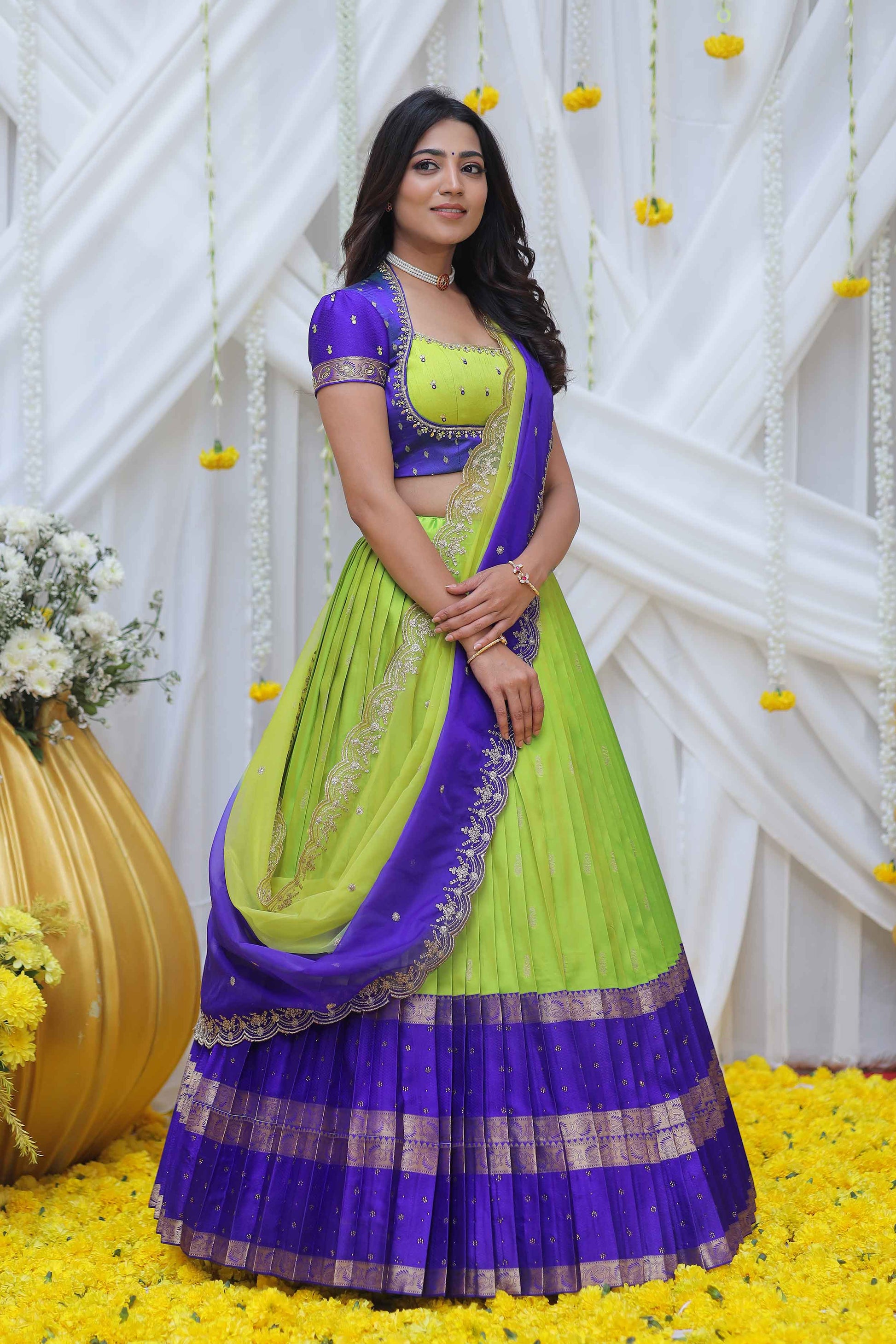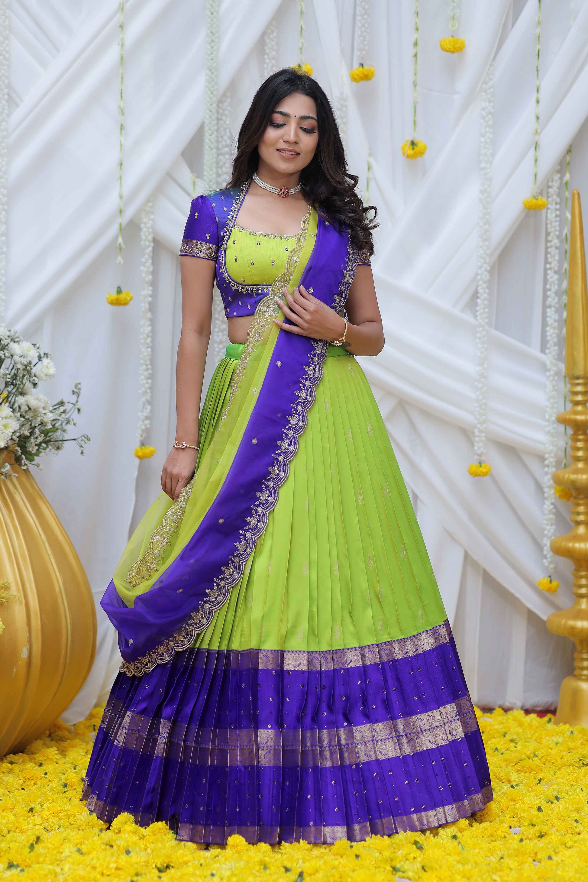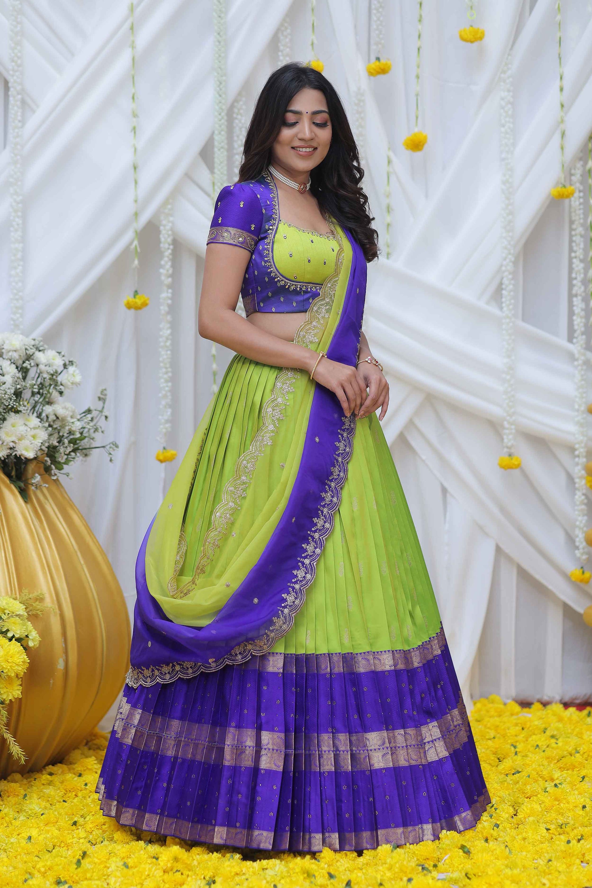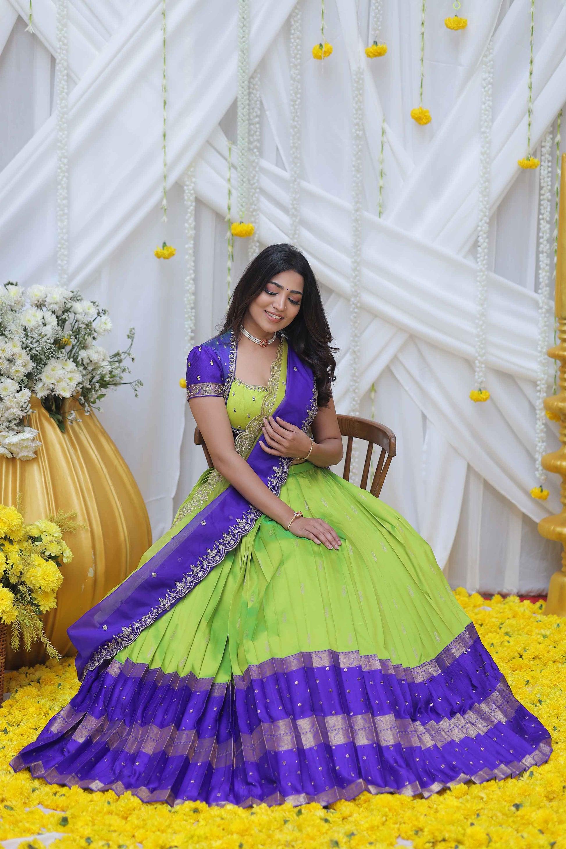 Nishkala Lime and Blue Gadval Silk Lehenga Set PC775