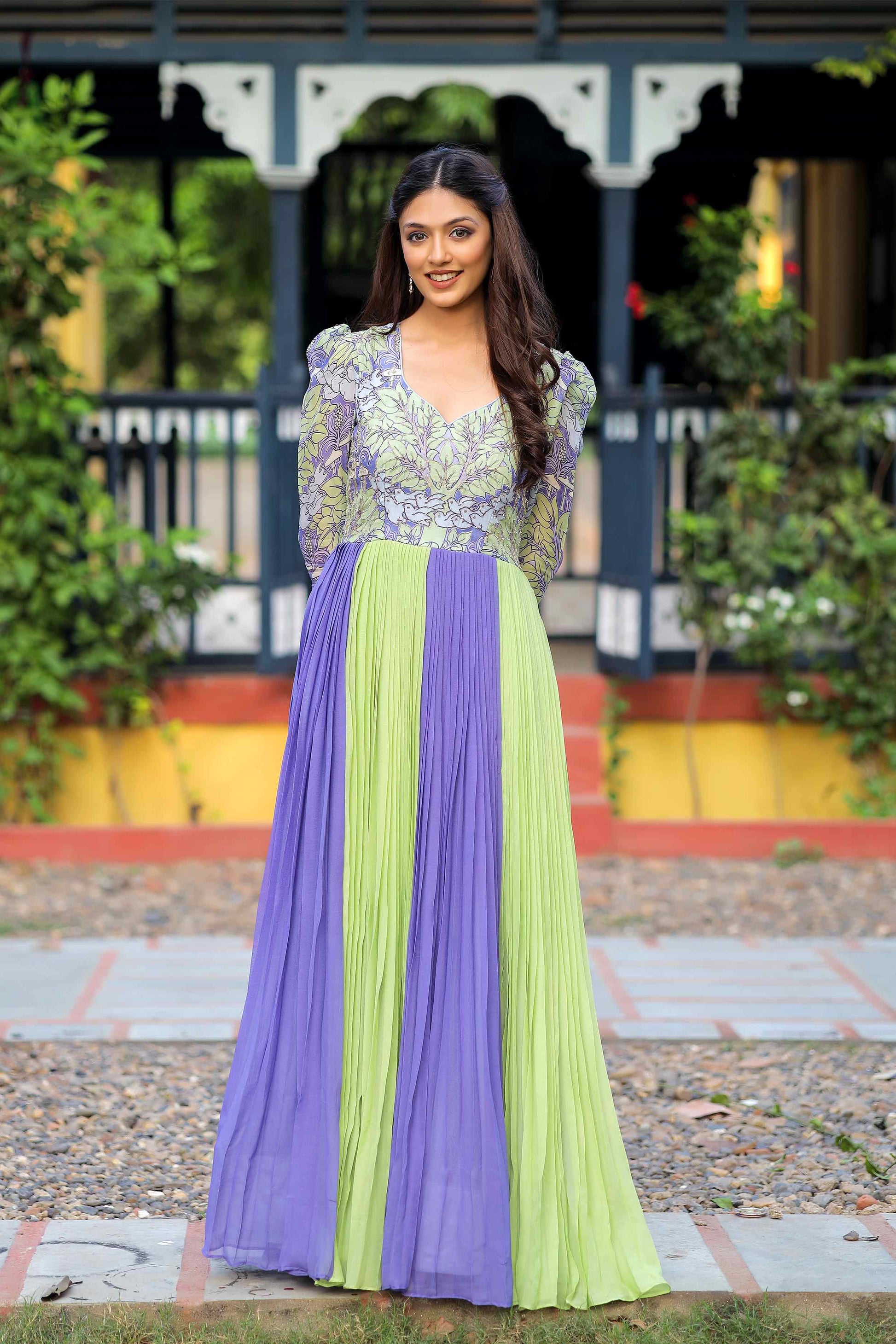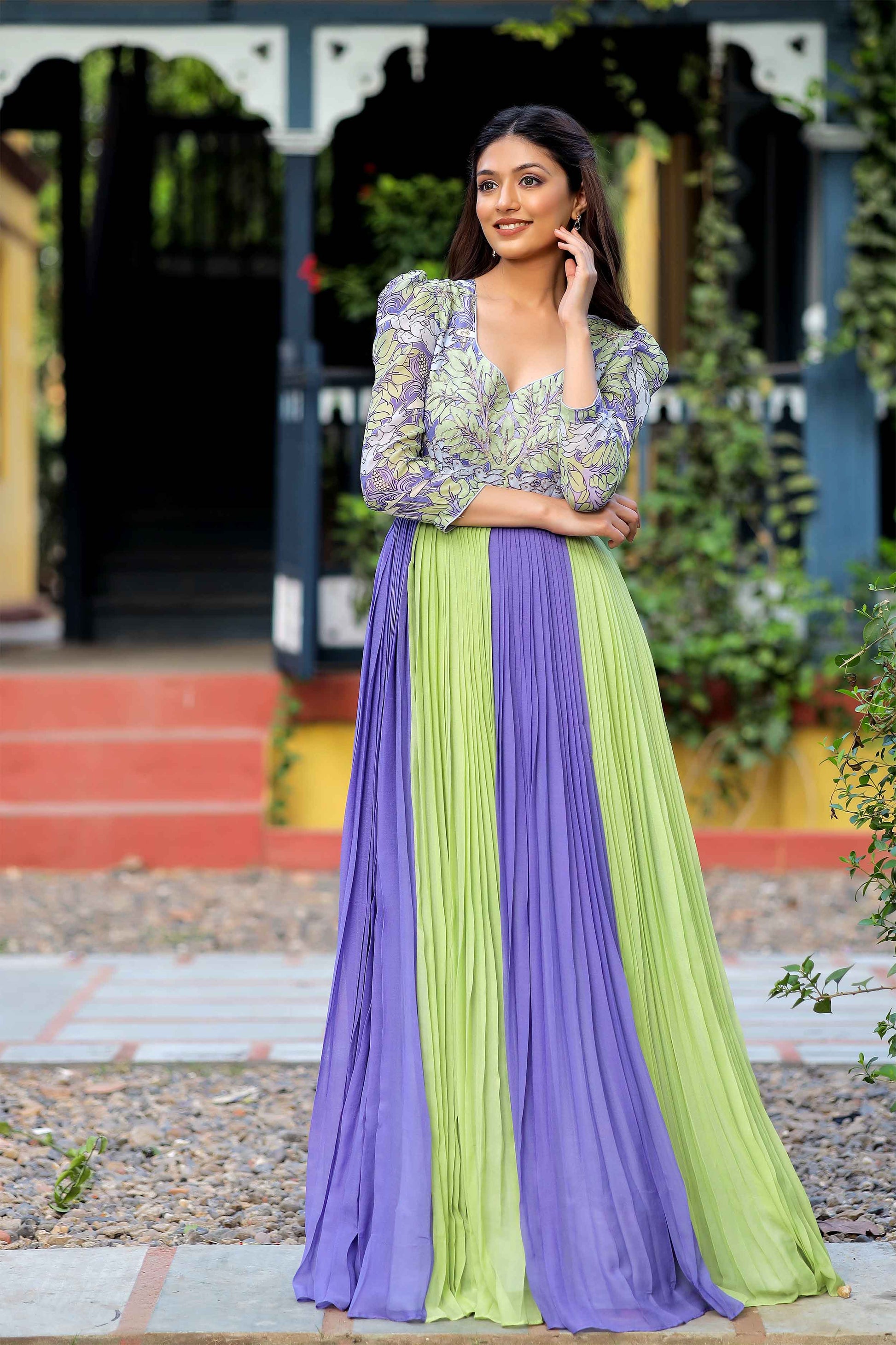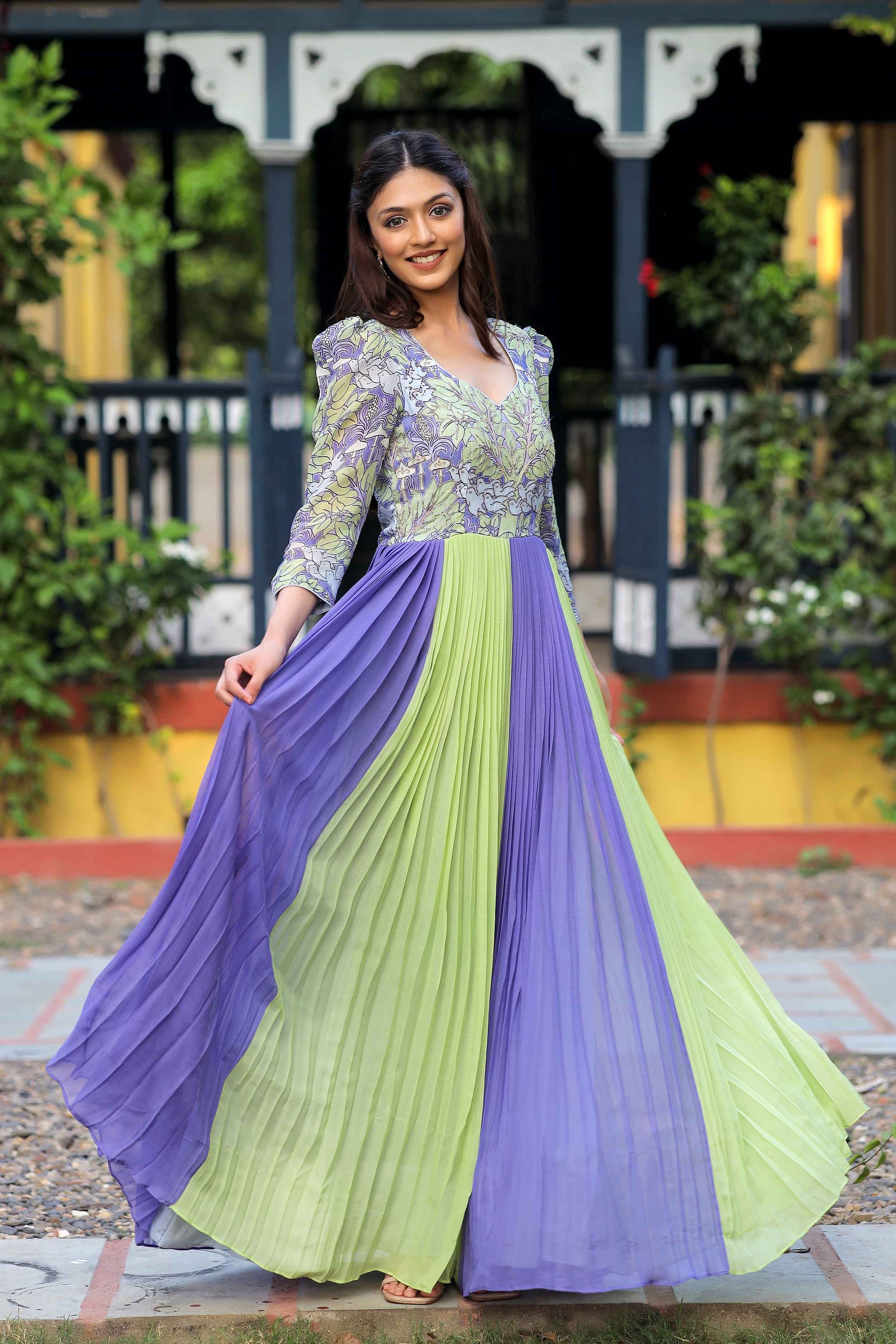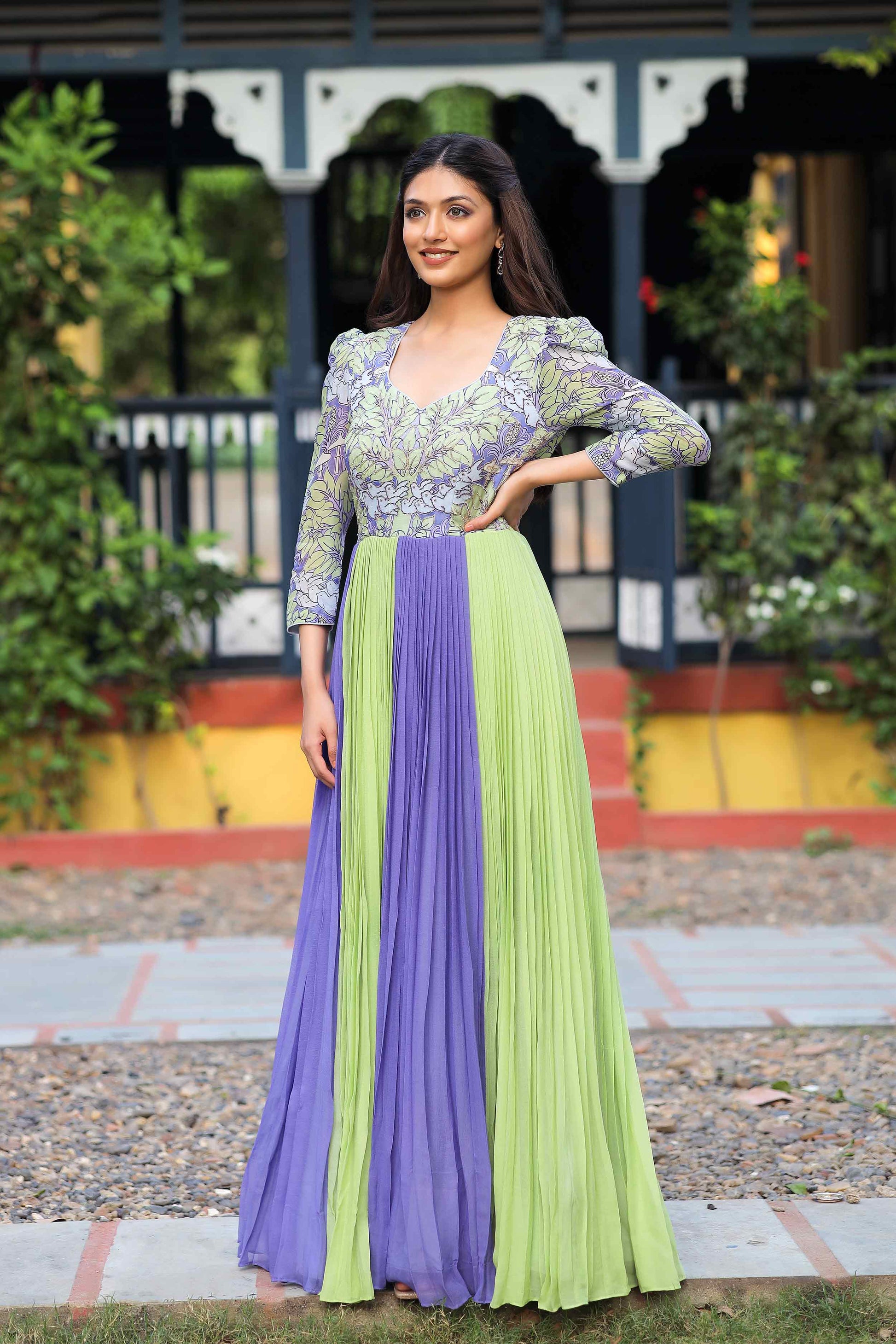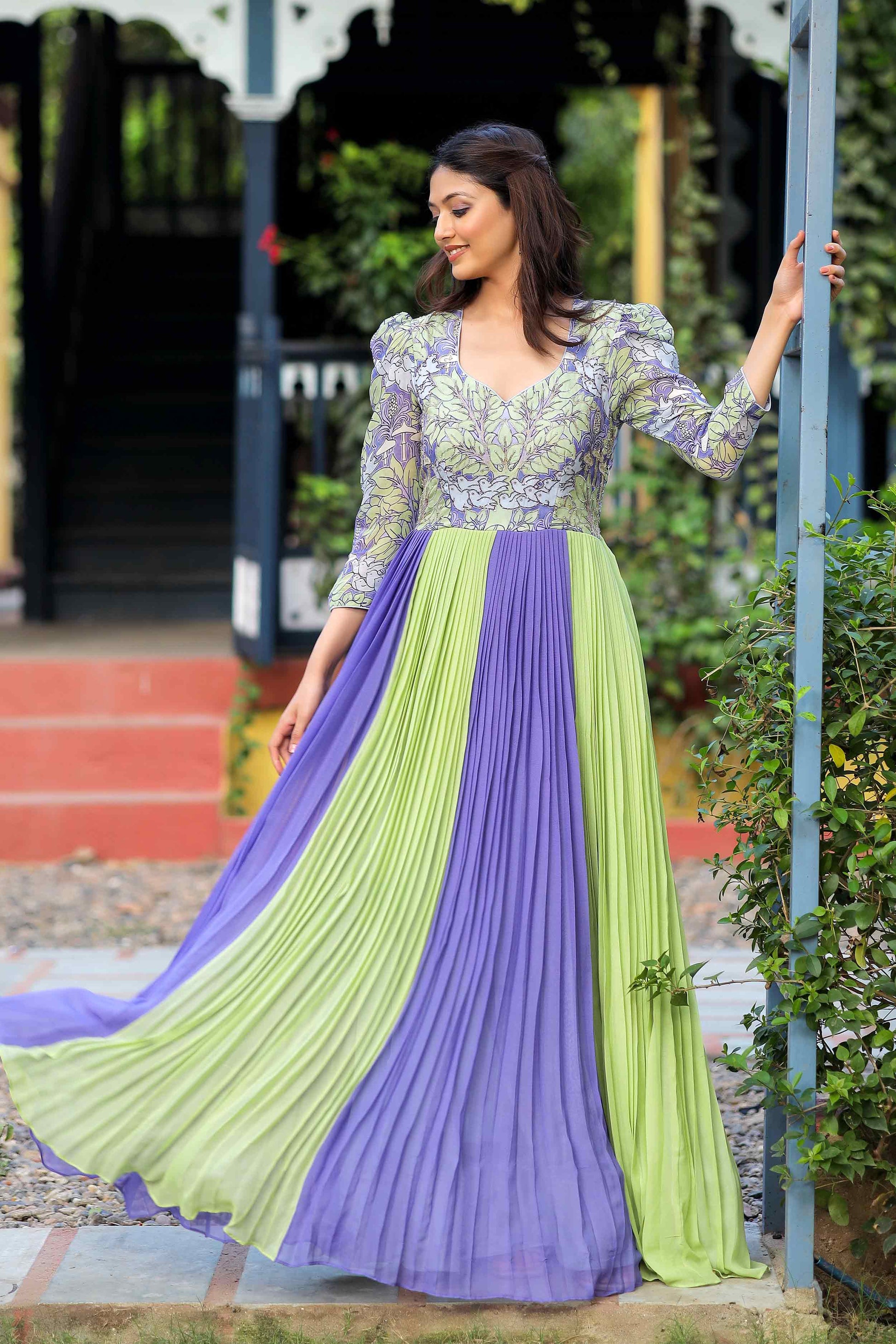 Elevate your evening elegance with this enchanting songbird georgette dress in Lilac and Pista Pure Georgette Long Party Wear Dress, meticulously crafted with exquisite Jardoshi Pitta work adorning the yoke part. Indulge in the ethereal beauty of this captivating ensemble, where the soft lilac and soothing pista hues harmonize in perfect symphony. The flowing silhouette of pure georgette drapes gracefully, creating a mesmerizing aura of sophistication and grace. (Side Zip Attached)