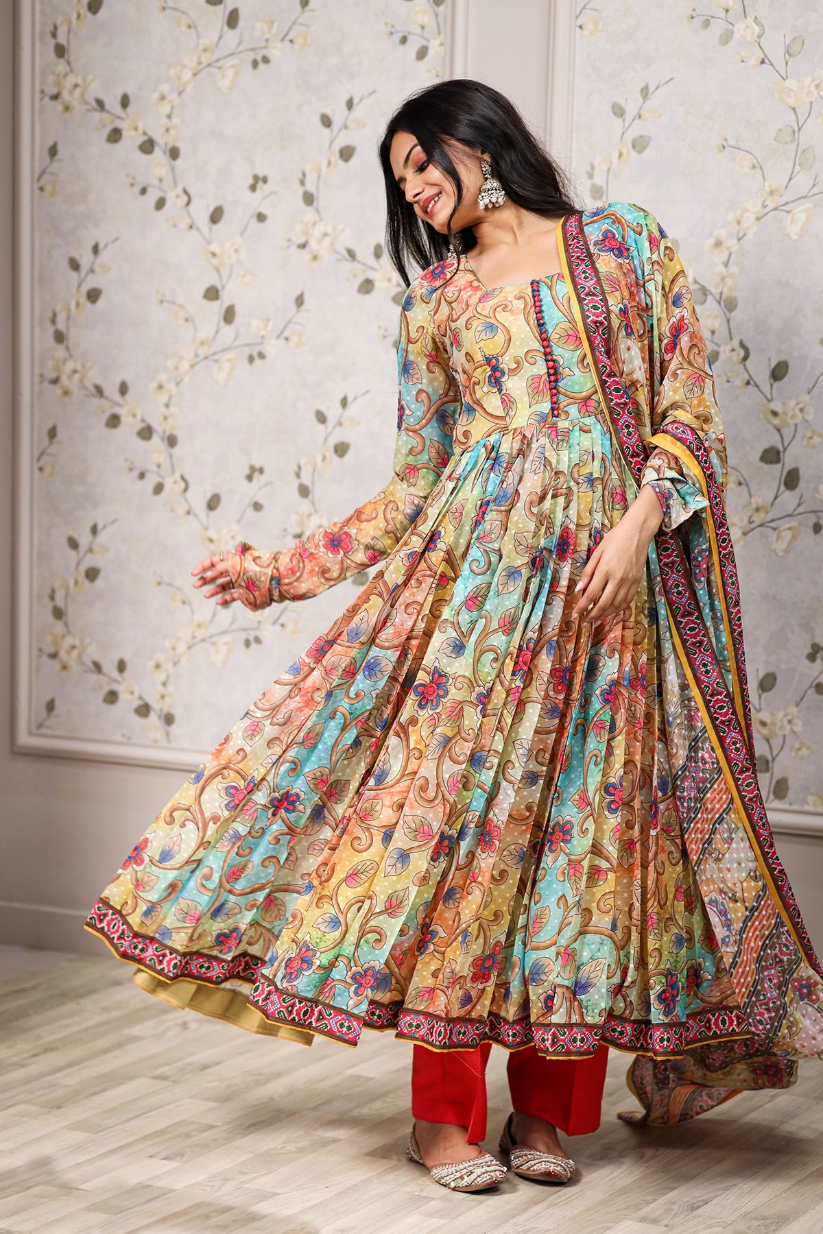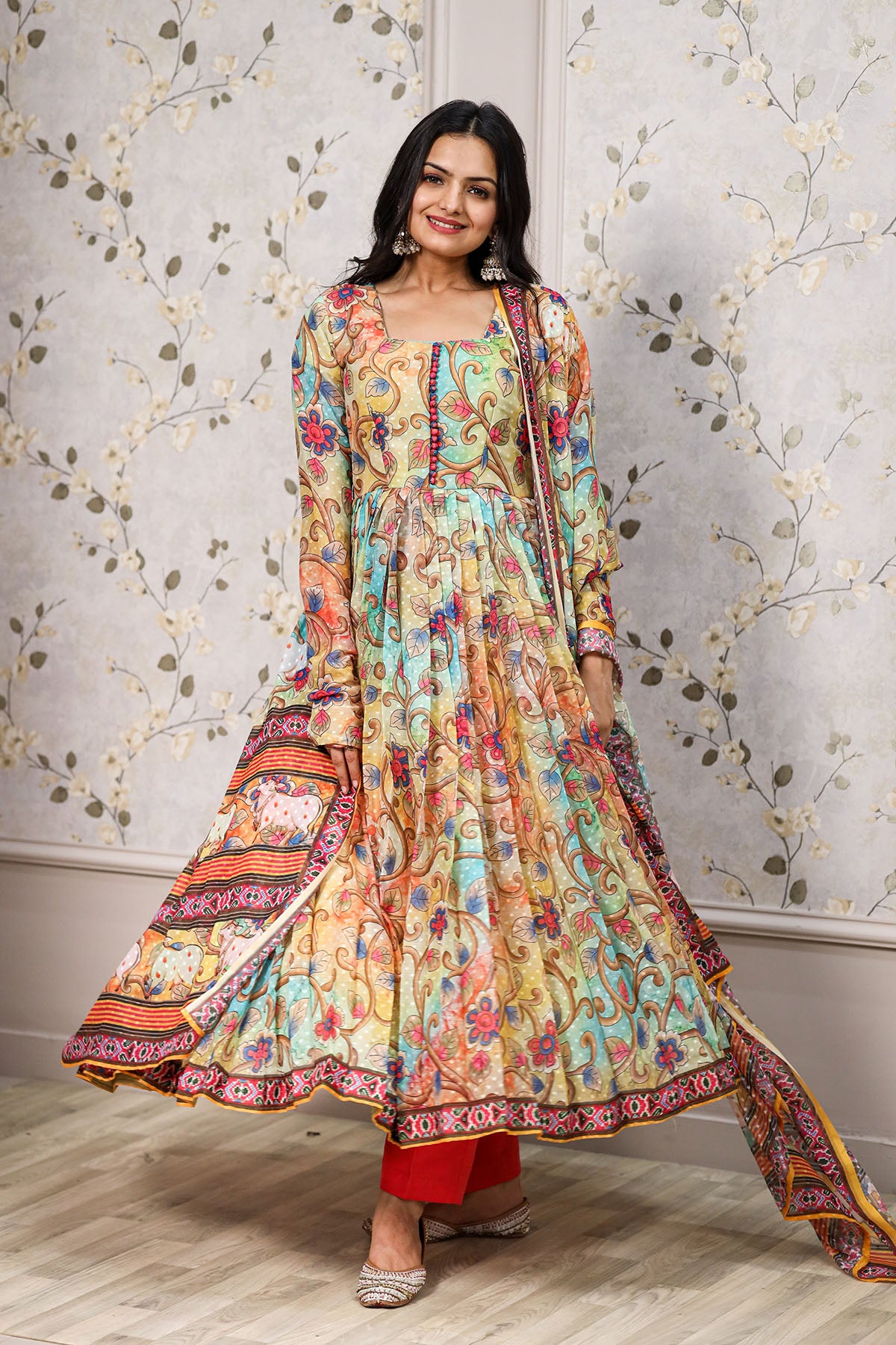 This gorgeous floral suit set is all you need to channel your inner romantic who loves to get flowers. Gift yourself this sophisticated floral printed Suit Set that features a dazzling border. We absolutely love how flattering the fit is. A must-have for every girl's glam closet.
