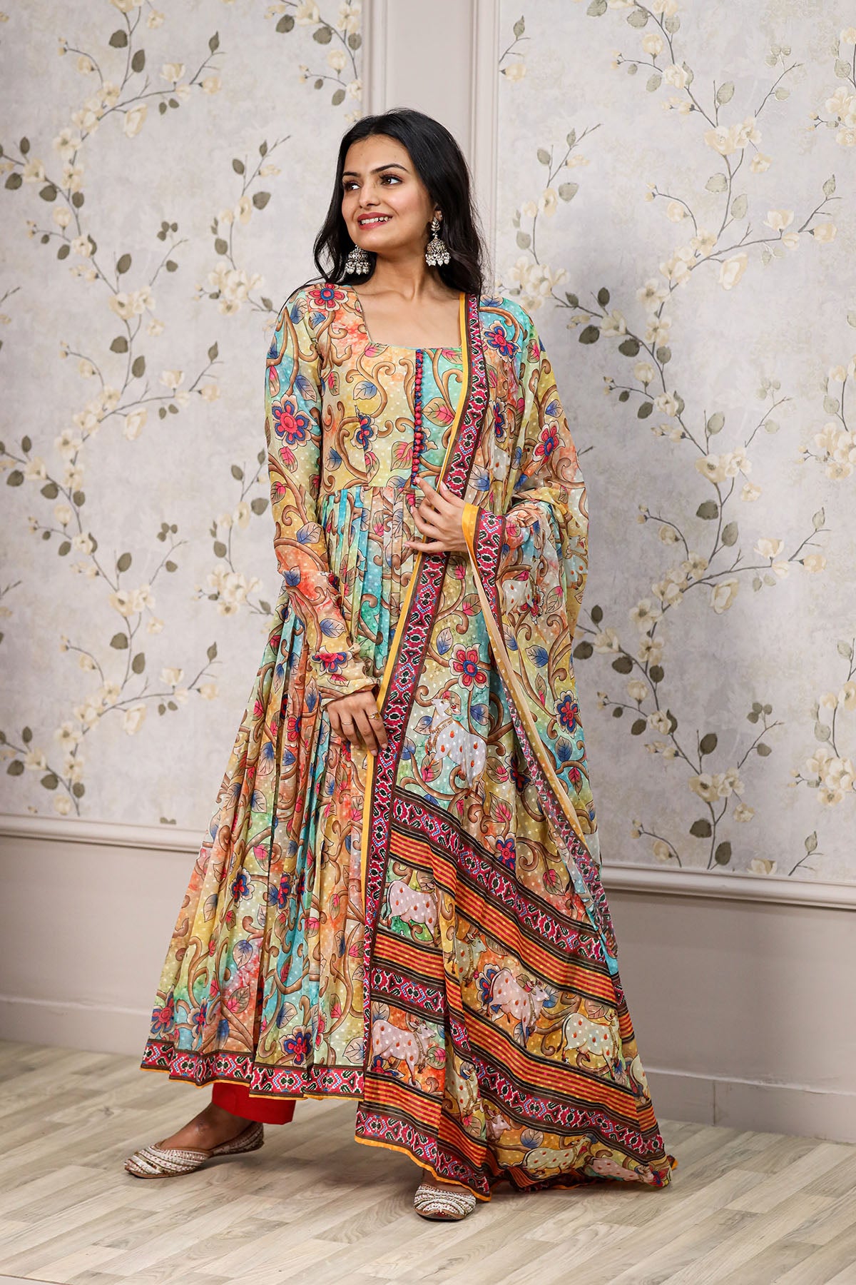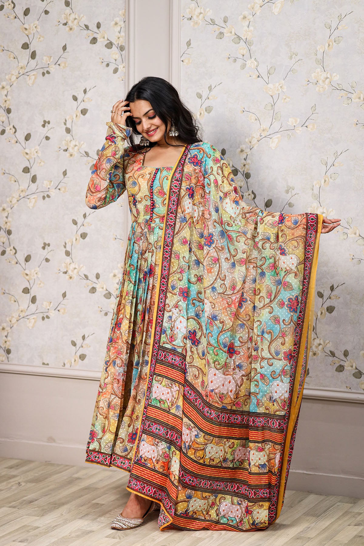 ☑️*Name: Sunheri chidiya pichvai Dress*